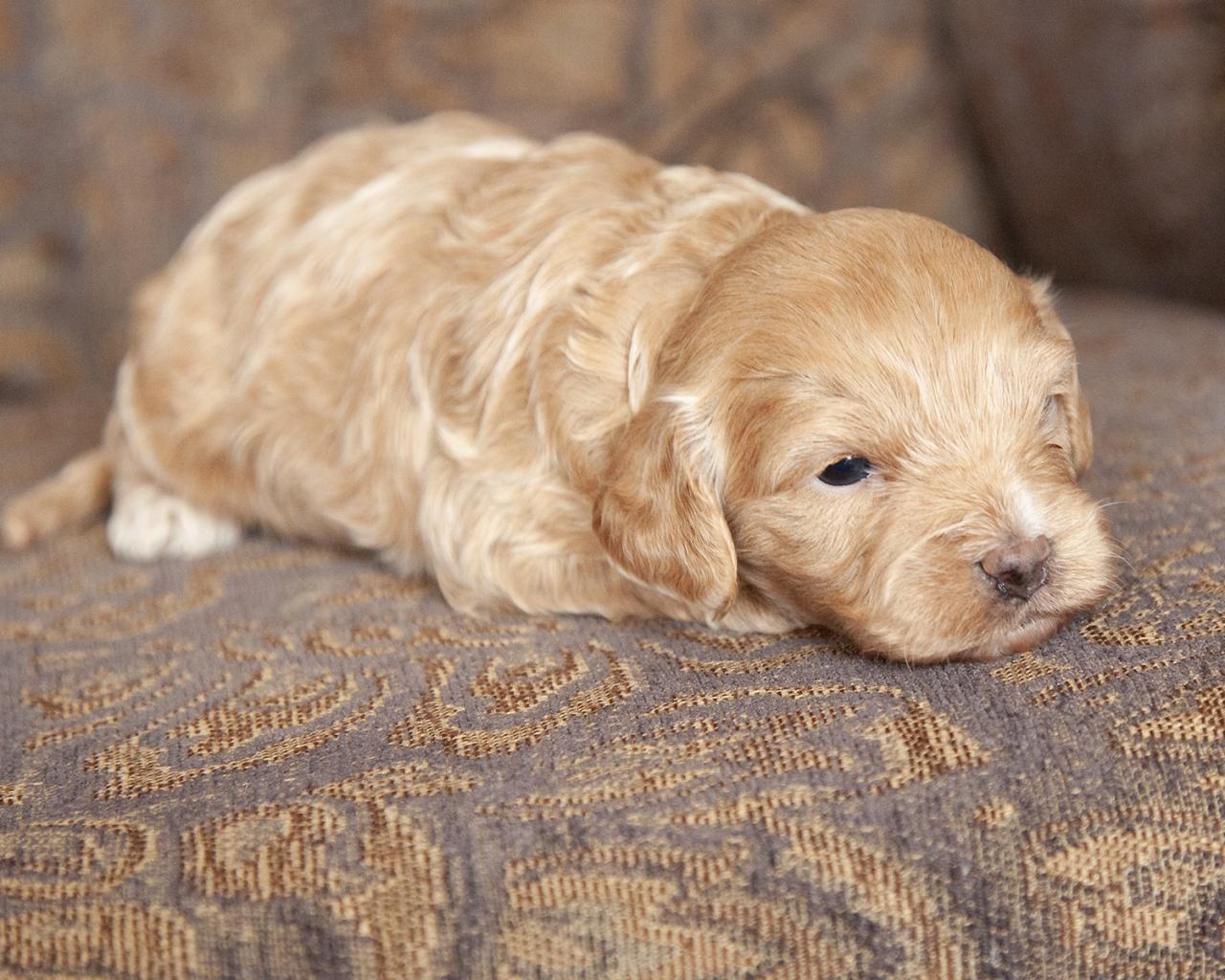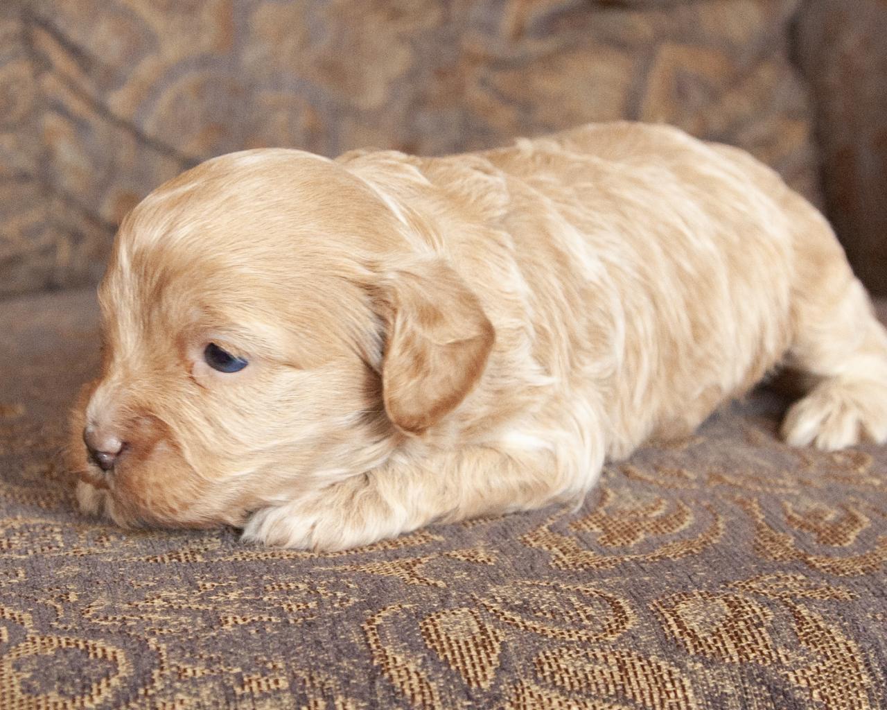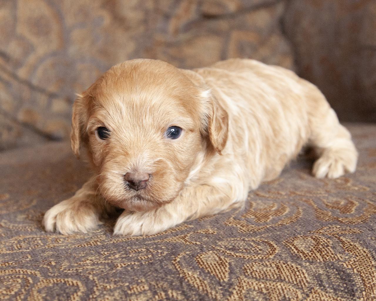 Our Cavapoos are a first-generation crossbreed of a purebred Poodle (dad) and Cavalier King Charles Spaniel (mom). Their size and temperament make them well-suited for low-key OR busy households and ideal for those welcoming a first-time puppy. Similar to their parents, these dogs are both intelligent and playful, making them delightful family companions. Cavapoos are moderately active and typically reach a small to medium size as they grow to an average of 15-17 lbs full-grown.